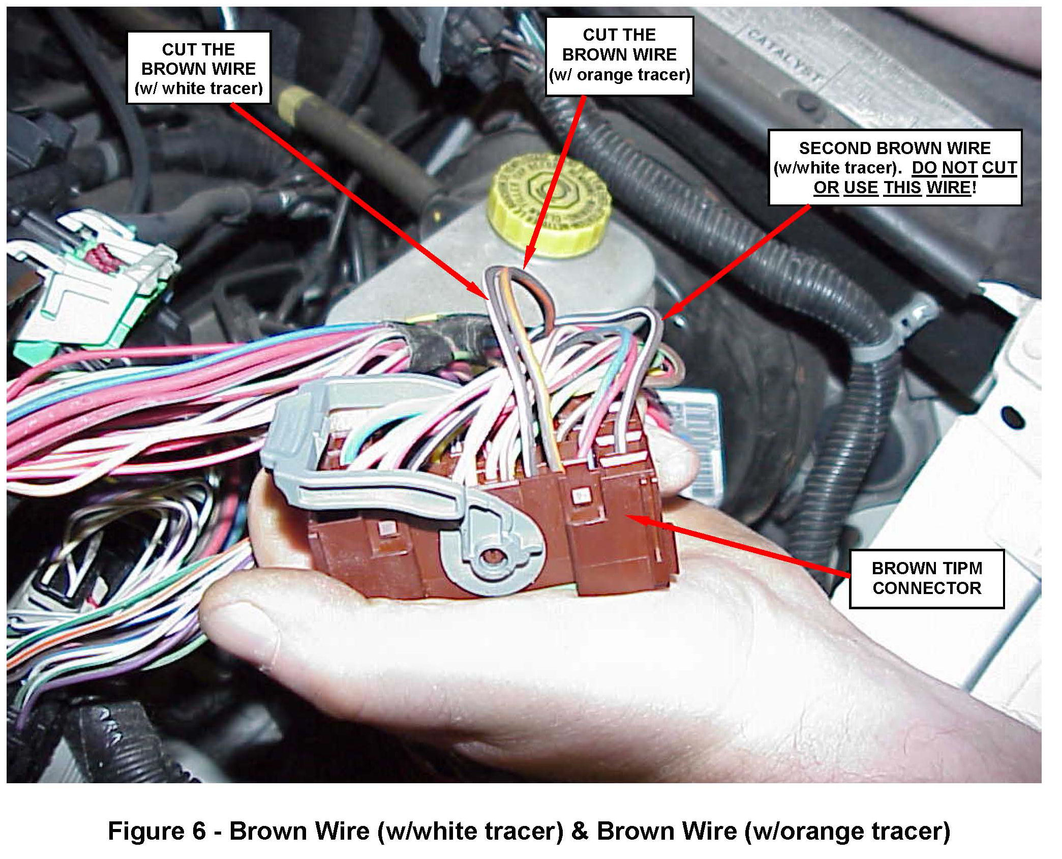 connector. Be sure to find the brown (with white tracer) wire that is located next to the brown (with orange tracer) wire (Figure 6).