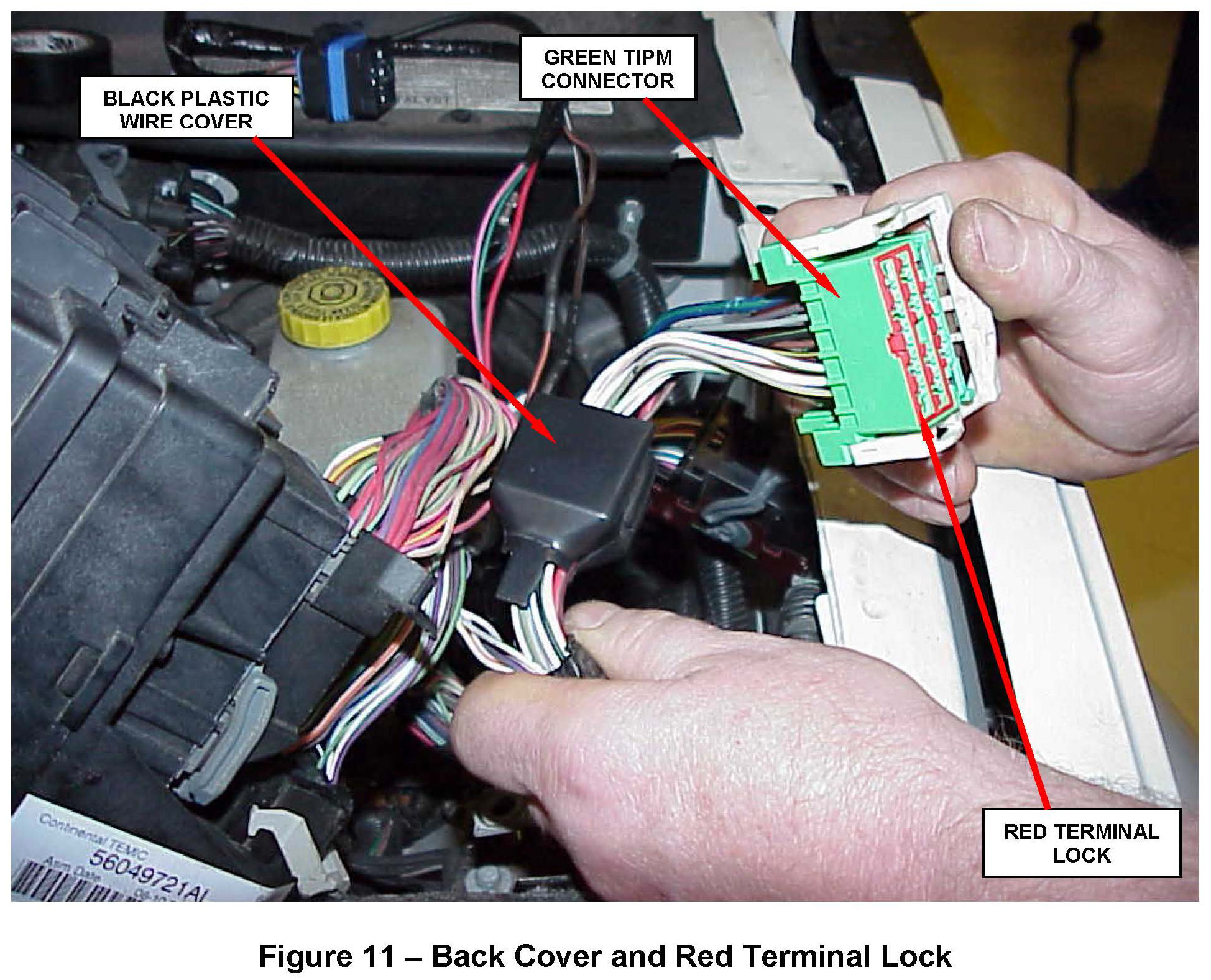 c. Remove the black plastic wire cover from the back of the green TIPM connector (Figure 11).