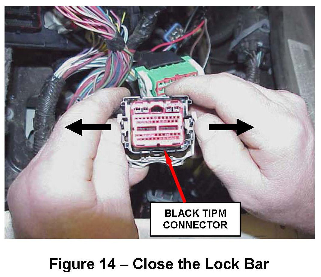 TIPM by first pressing down the center lock tab, and at the same time lifting the gray lock handle and then pulling on the connector body (Figure 4).