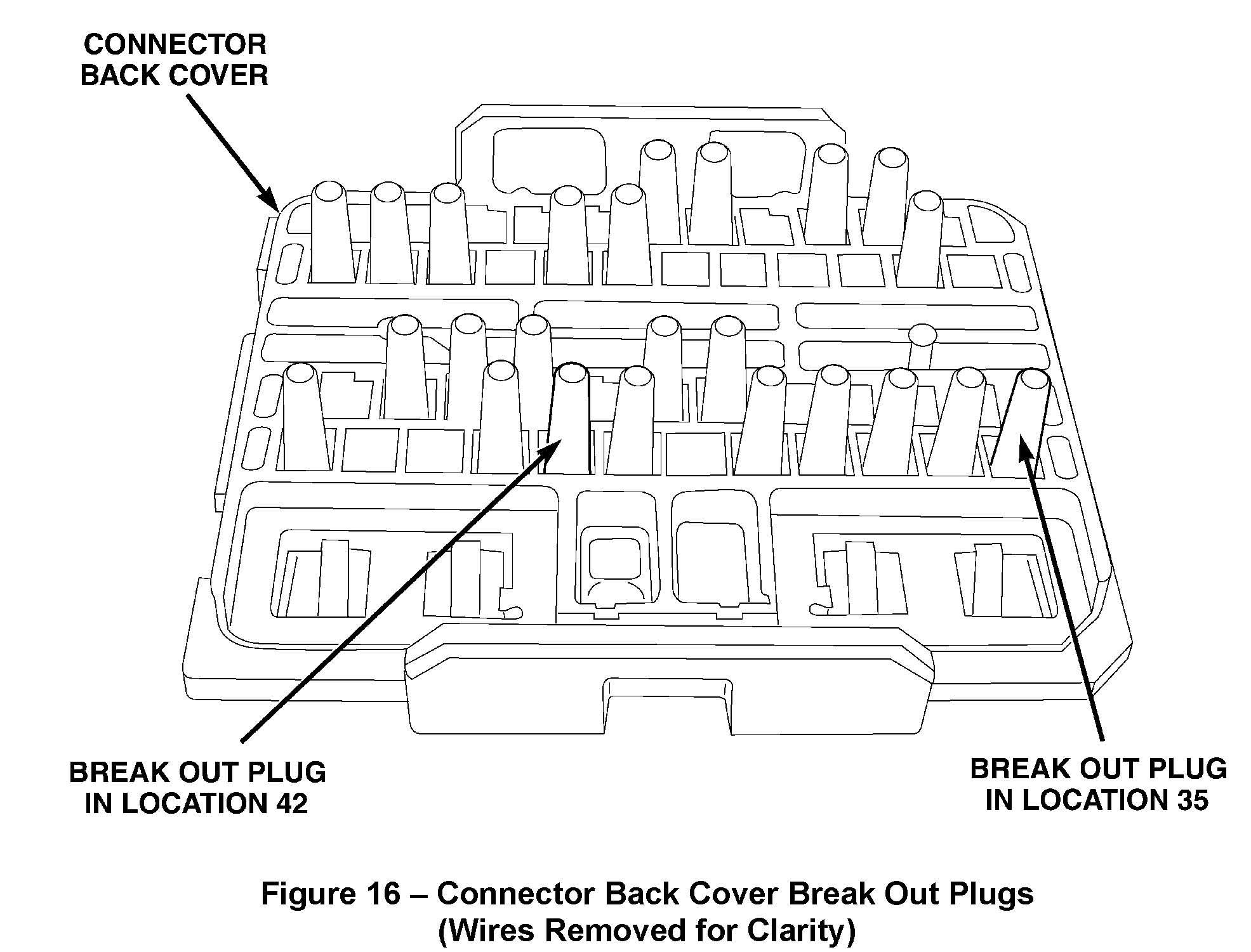 e. Using a small pair of needle nose pliers, carefully break out the plugs in location 35 and 42 (Figure 16).