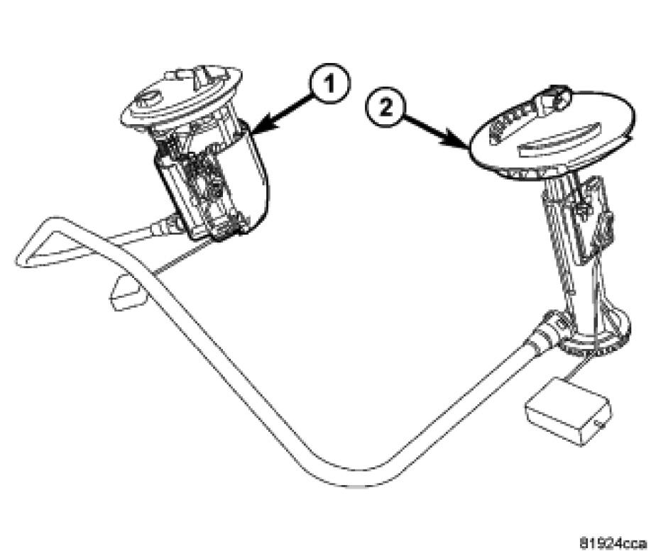 The fuel pump module contains the fuel pump, fuel reservoir, level sensor, fuel pressure regulator, and fuel filter.