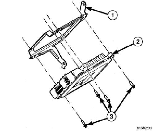 1. Install the Powertrain Control Module (PCM) (2) to bracket (1). Tighten bolts (3) to 5 Nm (45 in. lbs.).