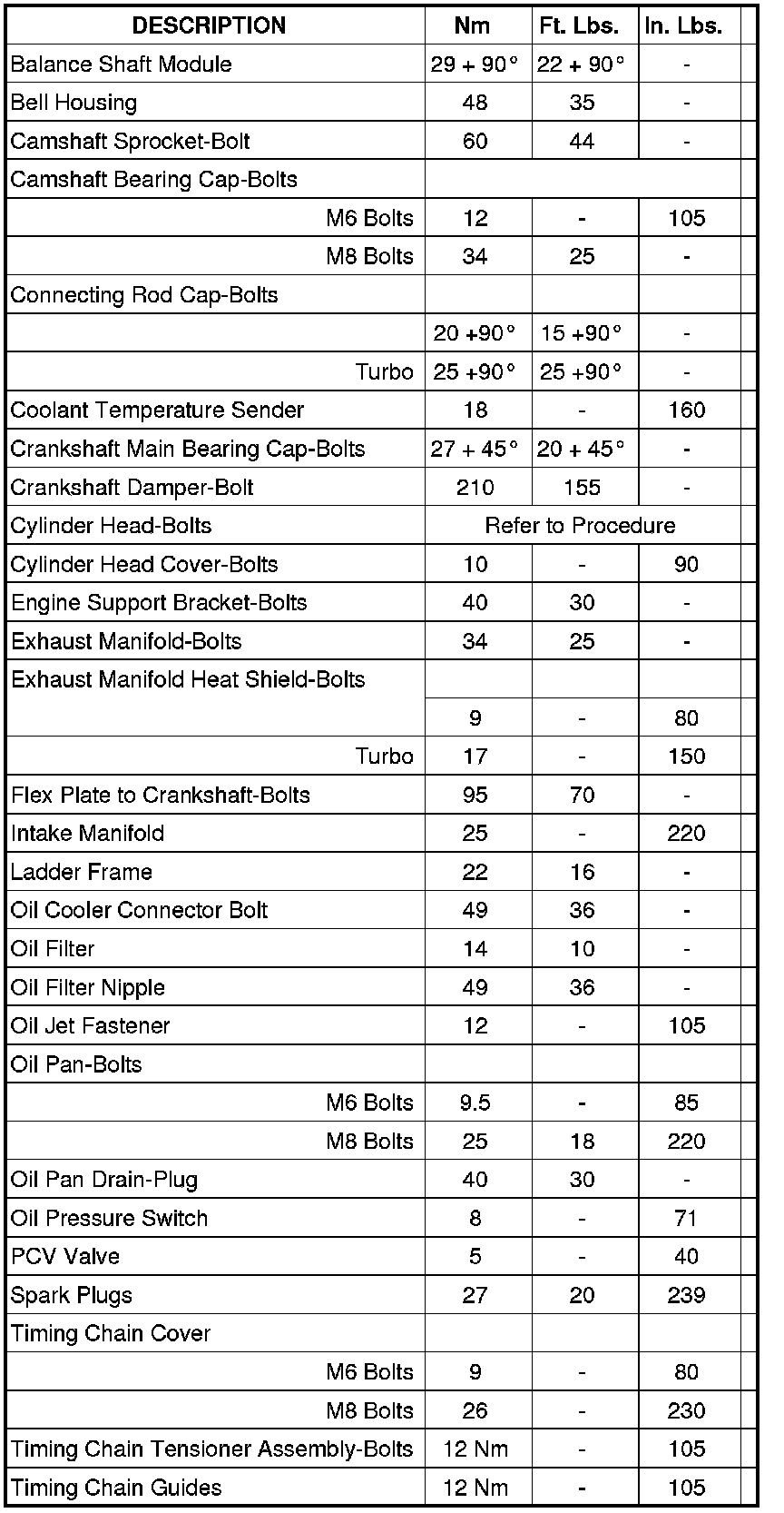 Engine Torque Specifications