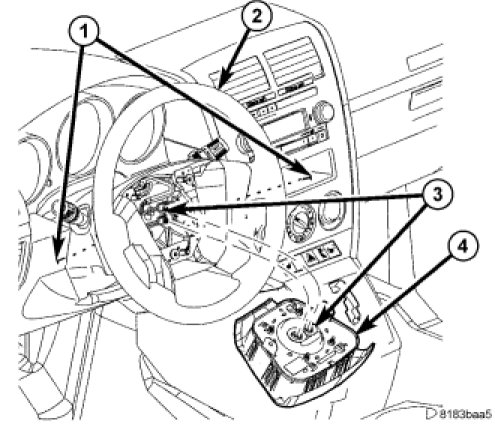 6. Install horn switch mounting screws (3) and tighten screws to 8 Nm (71 ins. lbs.).