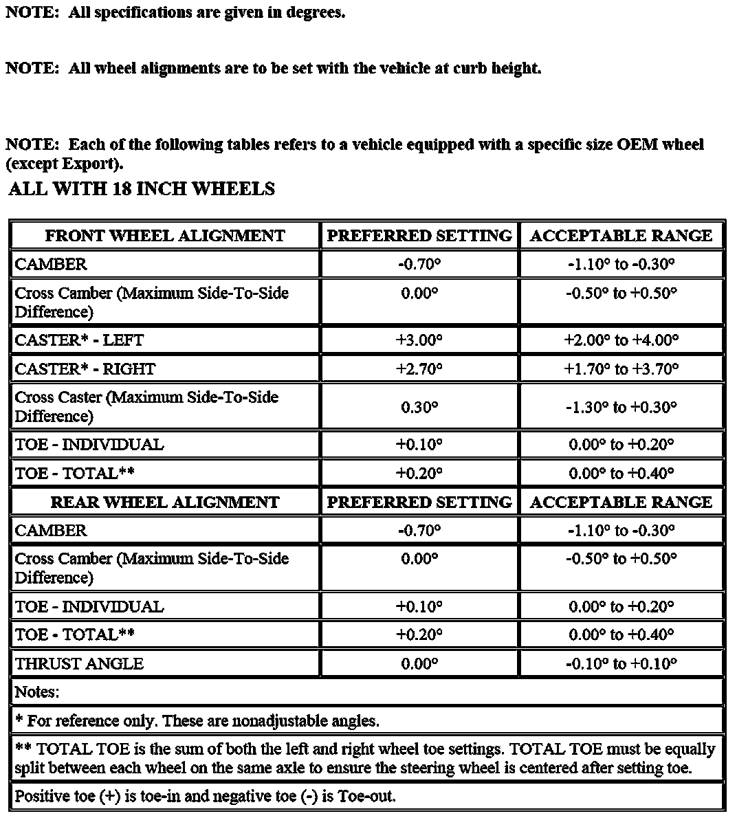 Wheel Alignment Specifications