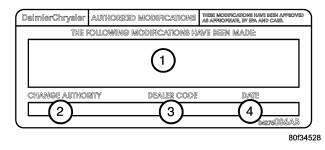 - Type the necessary information on the Authorized Modification Label p/n 04275086AB and attach near the VECI label. Refer to Fig 1.