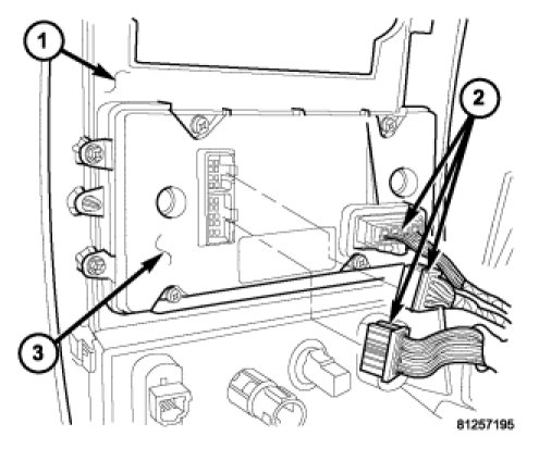 3. Connect the wire harness connector(s) (2) to the A/C-heater control (3) and install the instrument panel center bezel (1).