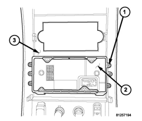 2. Install the screws (1) that secure the A/C-heater control to the instrument panel center bezel. Tighten the screws to 2 Nm (17 in. lbs.).