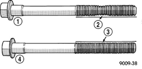 NOTE: The cylinder head bolts are tightened using a torque plus angle procedure. The bolts must be examined BEFORE reuse. If the threads are necked down the bolts should be replaced.