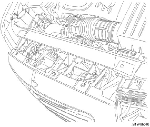 6. Remove wiring harness clips from bracket and radiator side shield.