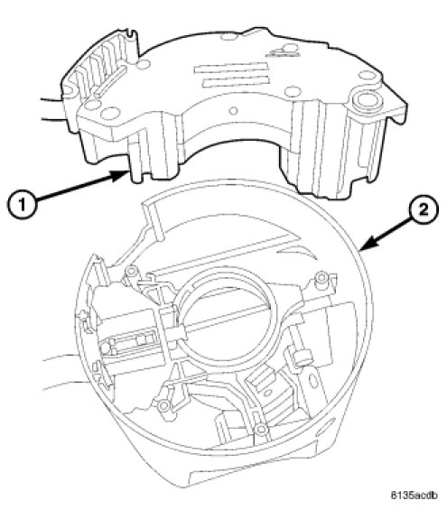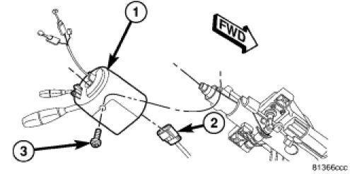WARNING: To service the speed control switch, the entire assembly that houses the speed control switch must be removed from the column. This must be done due to the clockspring passing through the assembly and into the self docking connector. Failure to remove the this assembly could damage the pins of the clockspring during installation and prevent the airbag system from operating properly.