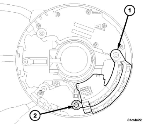 2. If equipped with ESP , install the steering angle sensor (1) and phillips head screw (2) to SCCM. Tighten phillips head screw to.7 Nm (6 in. lbs.). If not equipped with ESP , install the plastic insert and phillips head screw to steering column. Tighten phillips head screw to.7 Nm (6 in. lbs.).