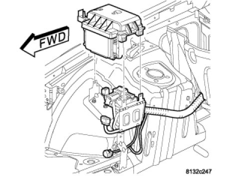 1. Position Integrated Power Module (IPM) to vehicle. Engage the three retaining clips.