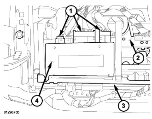 3. Pivot the module upward and disconnect the electrical connectors (1).