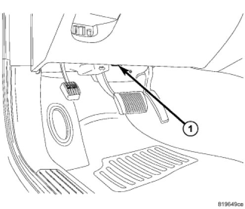 2. Connect a scan tool to the Data Link Connector (DLC) (1) below the driver side end of the instrument panel (2).