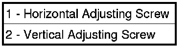 10. "Performing rough alignment. Ensure the vertical alignment cover is installed on the alignment board, this covers both of the alignment t's on the aiming board. The horizontal adjustment (1) screw is located on upper right corner of the ACC sensor. The vertical adjustment (2) screw is located on the lower left corner of the ACC sensor."