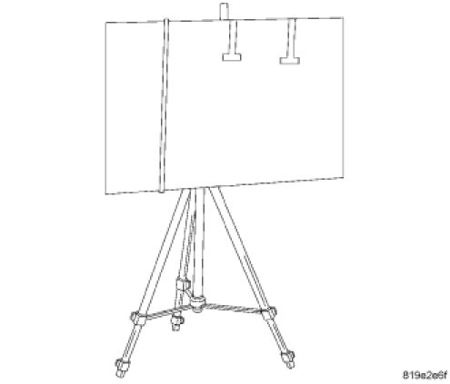 26. Adjust the tripod so that the top edge of the aiming board is level at BOTH CORNERS. For setting the board height dimensions, Specifications.