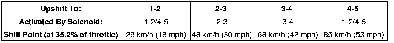 Based on how aggressive the driver is, the TCM moves up the shift so that the present gear is held a little longer before the next upshift. If the driving style is still aggressive, the shift point is modified up to ten steps. If the driving returns to normal, then the shift point modification also returns to the base position.