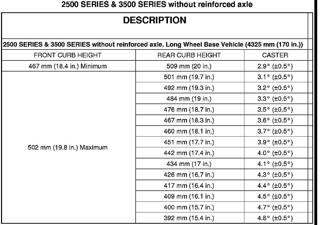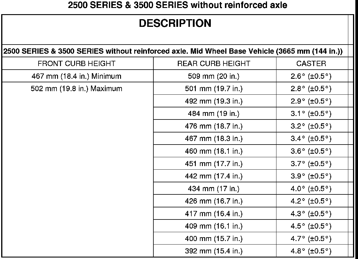 FRONT AND REAR CURB HEIGHT SPECIFICATIONS