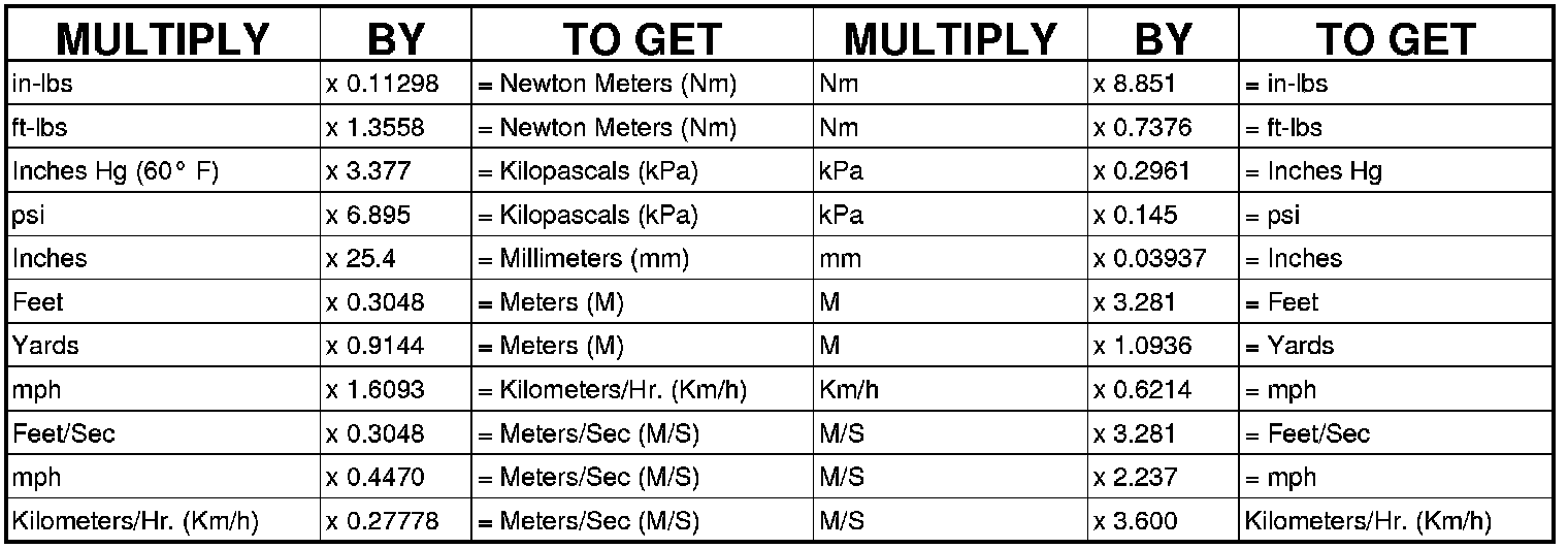 CONVERSION FORMULAS AND EQUIVALENT VALUES