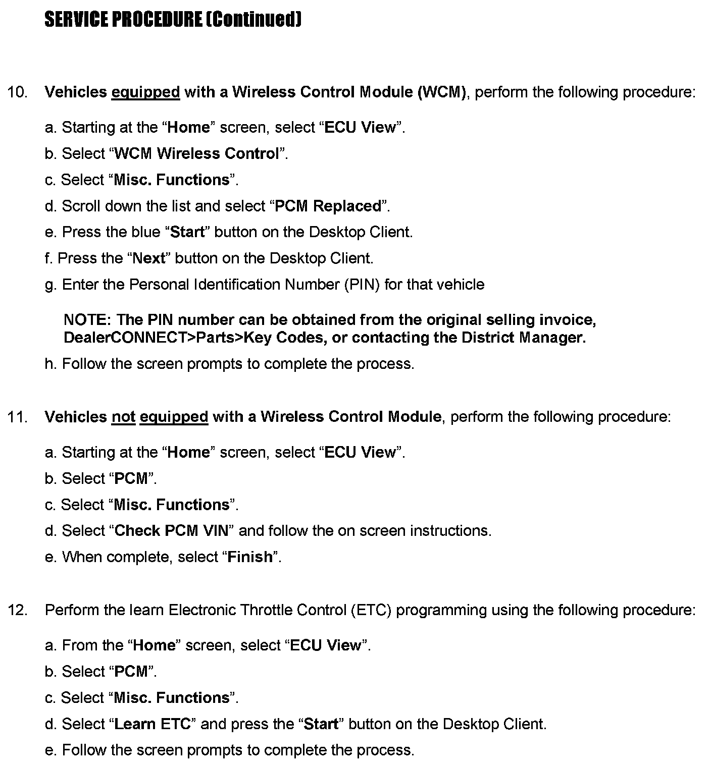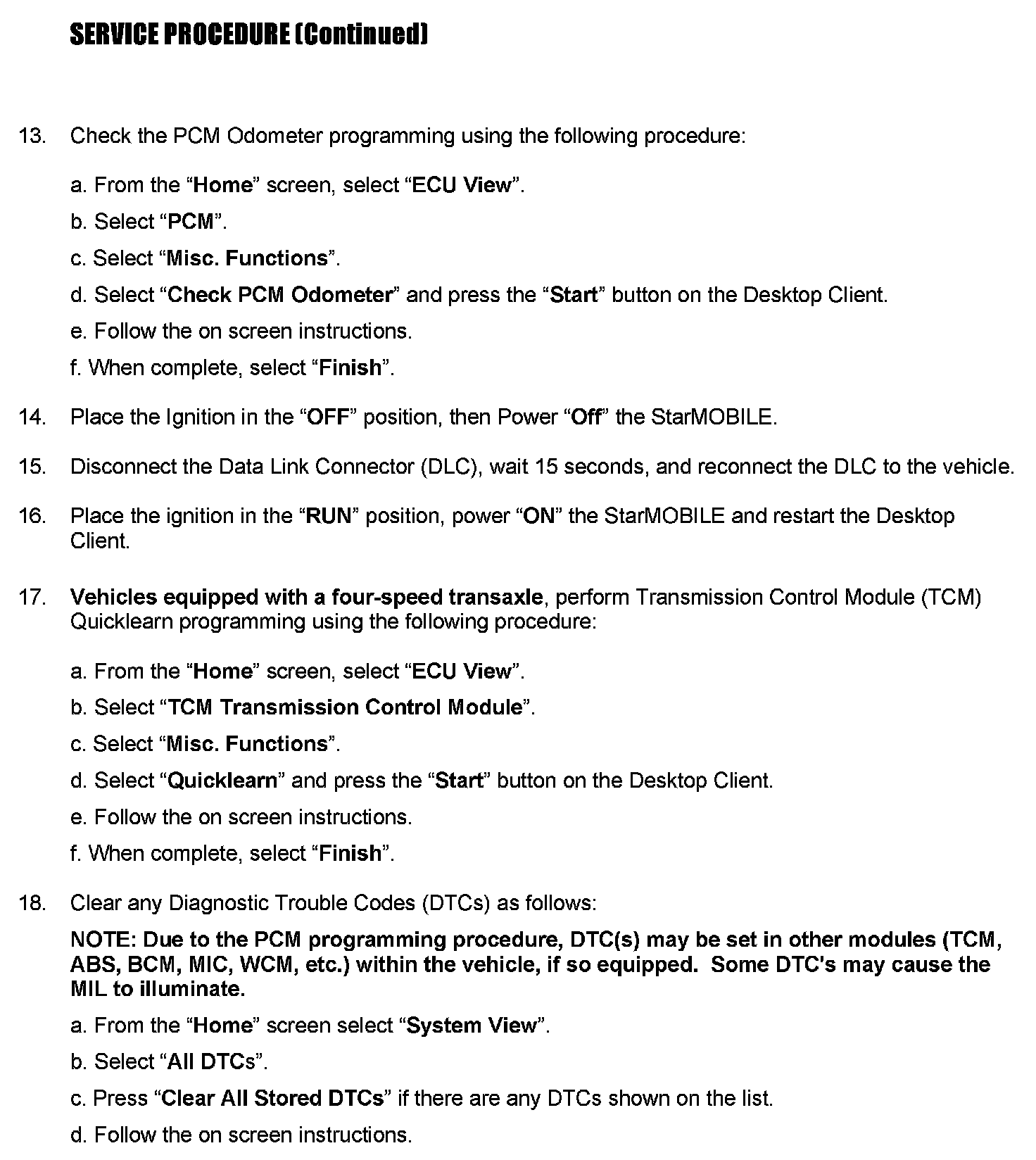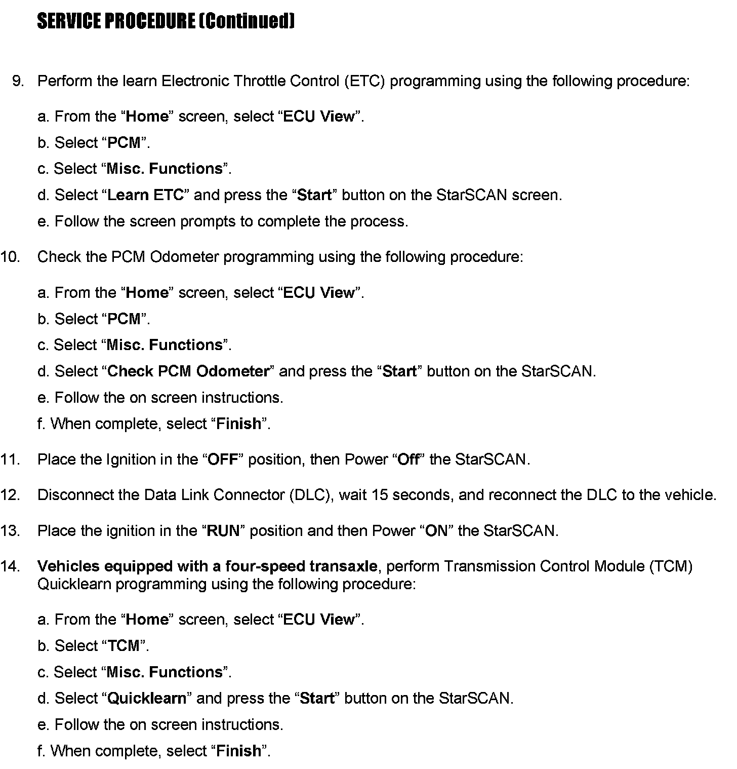 ^ To correct this condition, the PCM must be replaced and the correct software programmed into the new module.