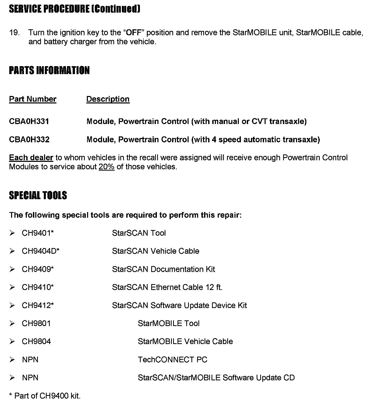 SAFETY RECALL H33 POWERTRAIN CONTROL MODULE