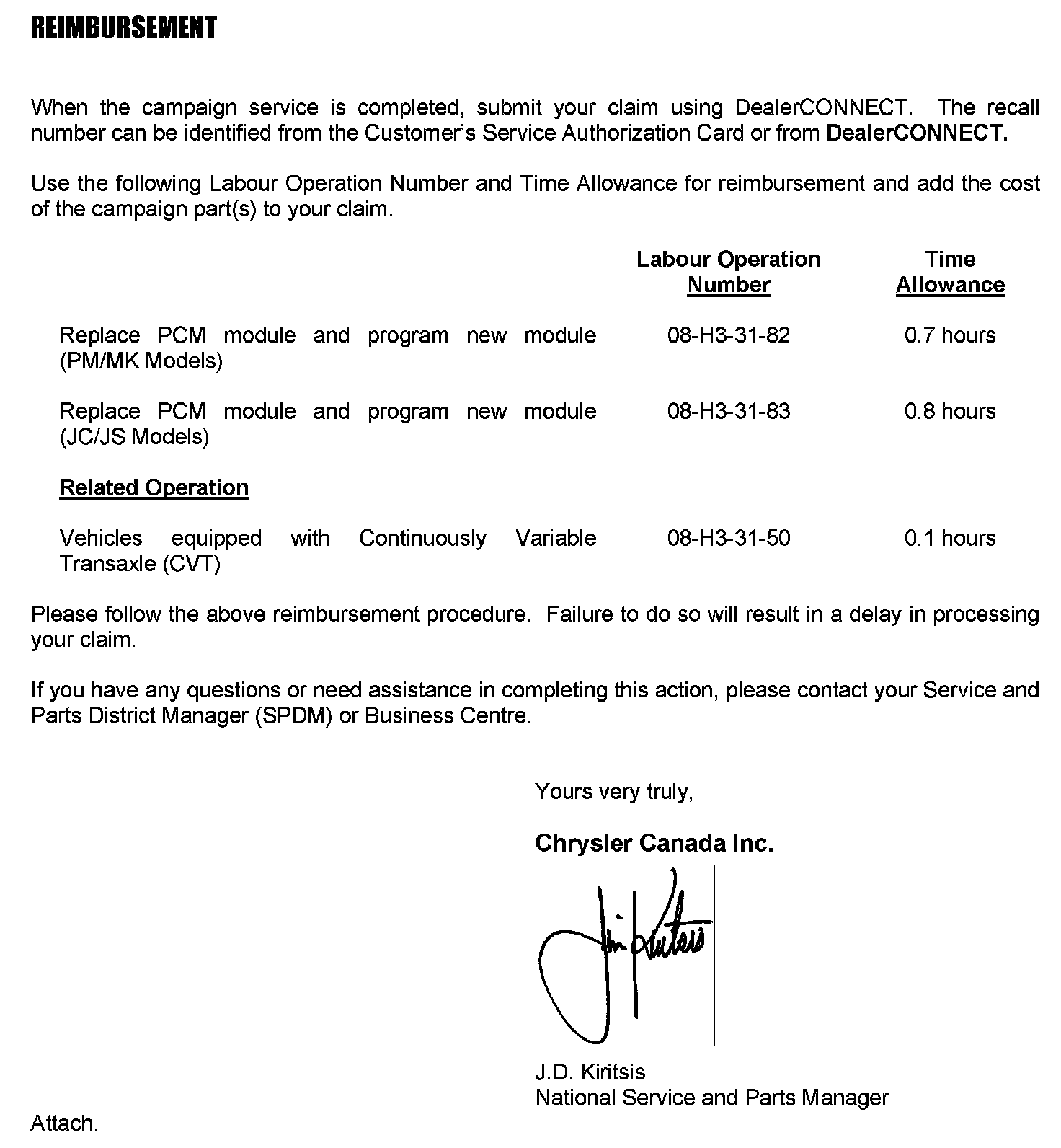 This Canadian Recall Notification can also be found in DealerCONNECT - See below: