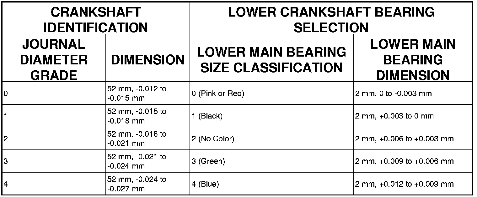 There are three different size bearings available. The bearing class is read downward from top and corresponds to the front journal to the rear journal on the bottom.