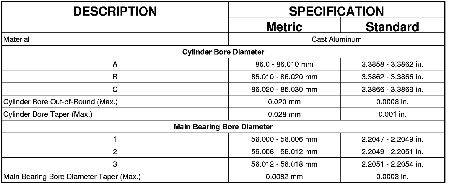CYLINDER HEAD CAMSHAFT BEARING BORE DIAMETER