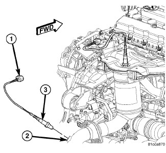 WARNING: THE EXHAUST MANIFOLD, EXHAUST PIPES AND CATALYTIC CONVERTER(S) BECOME VERY HOT DURING ENGINE OPERATION. ALLOW ENGINE TO COOL BEFORE REMOVING OXYGEN SENSOR. FAILURE TO ALLOW ENGINE TO COOL BEFORE REMOVAL MAY RESULT IN PERSONAL INJURY CAUSED BY BURNS.