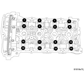 CAUTION: The cylinder head bolts are tightened using a torque plus angle procedure. The bolts must be examined BEFORE reuse. If the threads are necked down the bolts must be replaced.