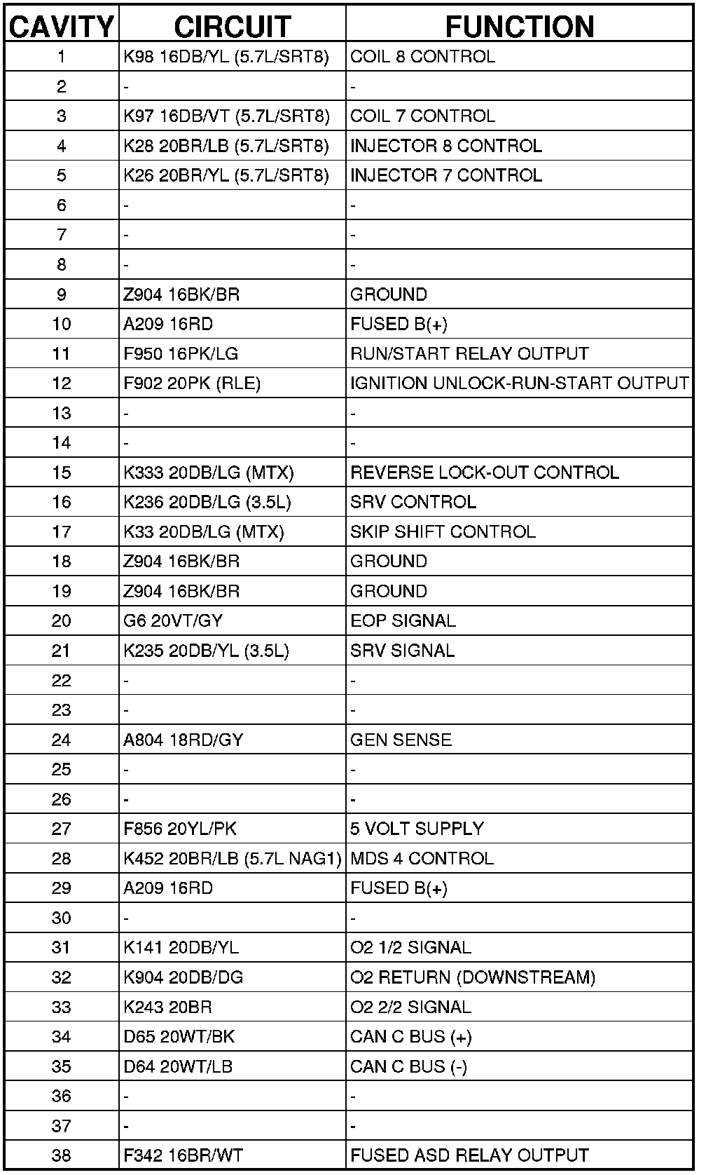 Powertrain Control Module C1 (Headlamp And Dash) 38 Way