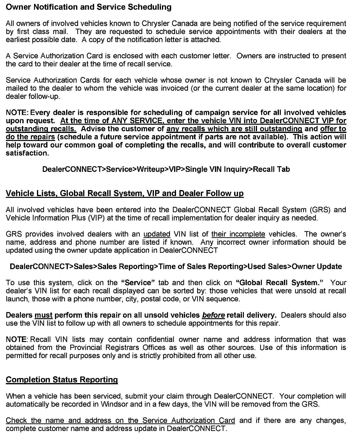 This Canadian Recall Notification can also be found in DealerCONNECT - See below: