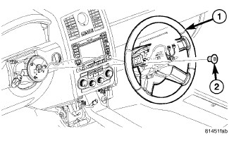 8. Align the spline on the steering wheel hub to shaft and install the steering wheel (1).