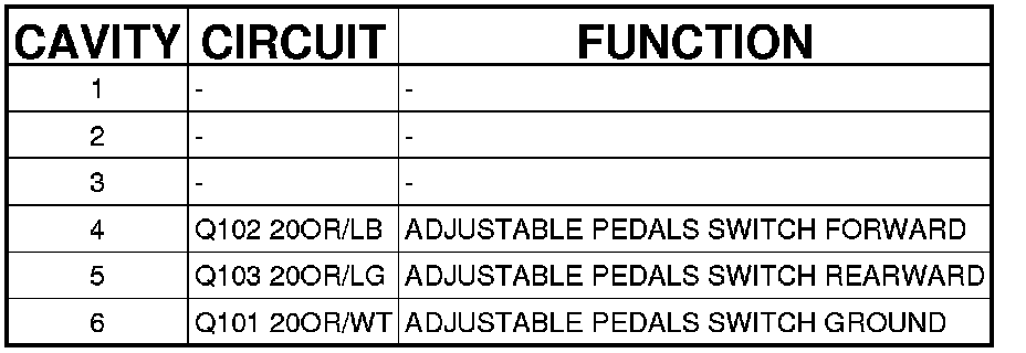 Connector C5 (ADJUSTABLE PEDALS) - (FRONT SEAT) 6 WAY