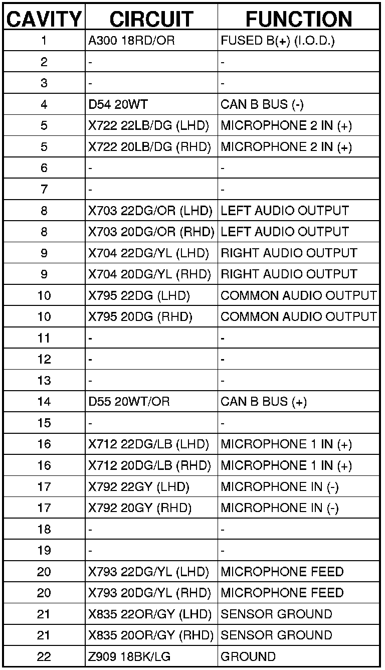 Hands Free Module C1 (Except Navigation) (Instrument Panel) 22 Way