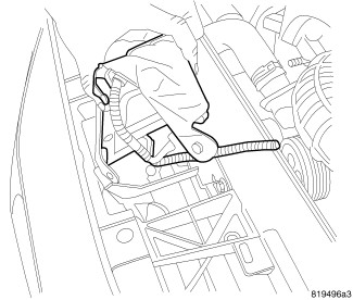 CAUTION: The hood release cable must be routed under the bracket assembly. Failure to route the hood release cable properly may pinch the cable and make the hood release inoperable This may cause damage to the release mechanism and/or cable.