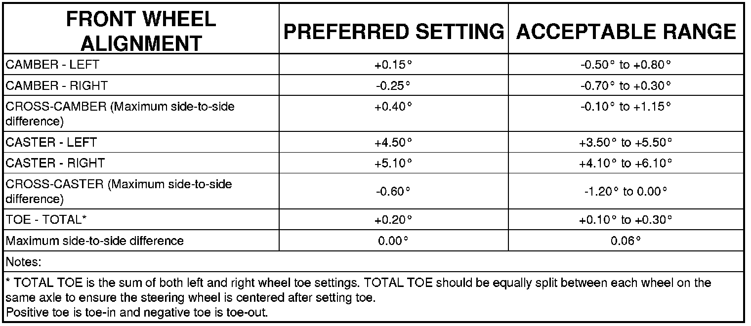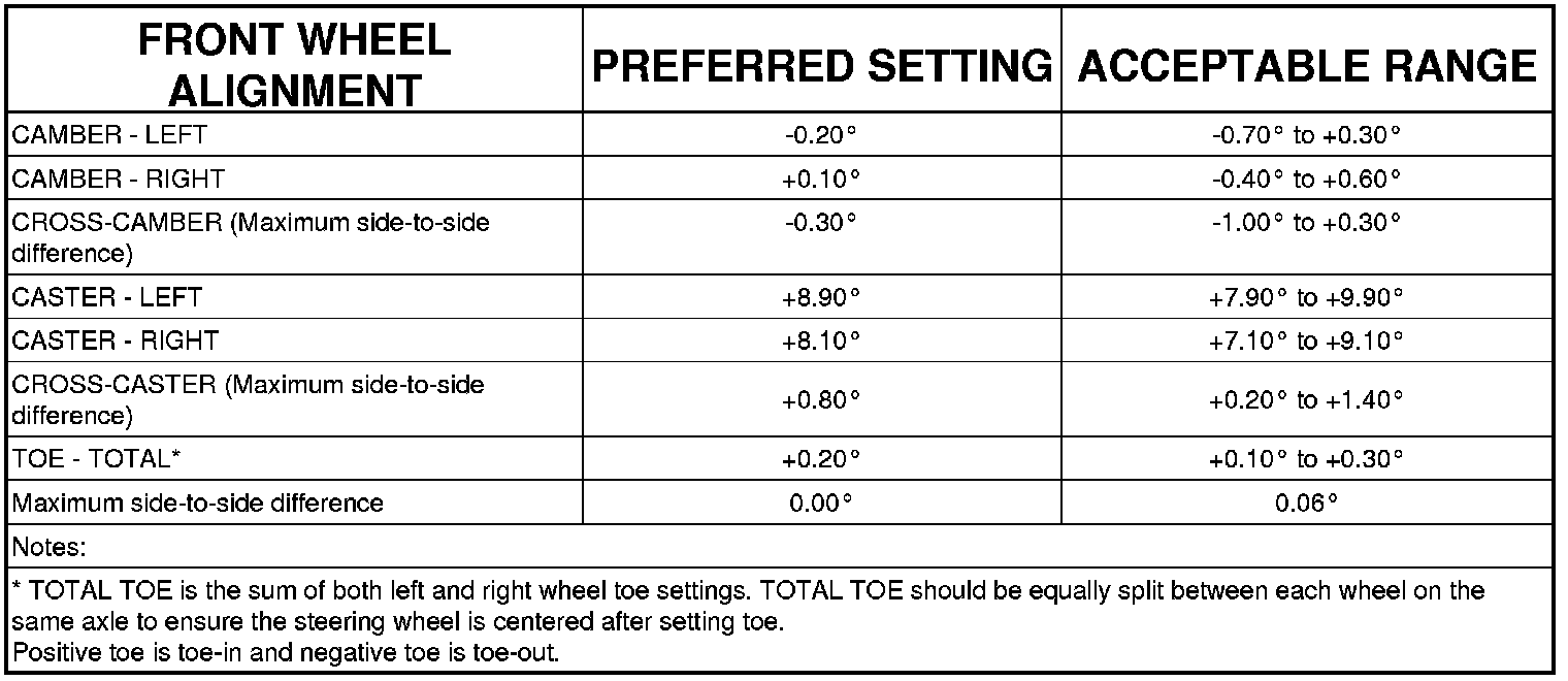 Wheel Alignment Specifications