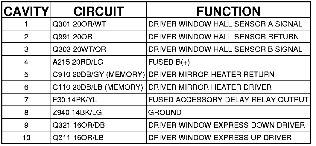 Connector C1 - (FRONT DRIVER DOOR) 10 WAY