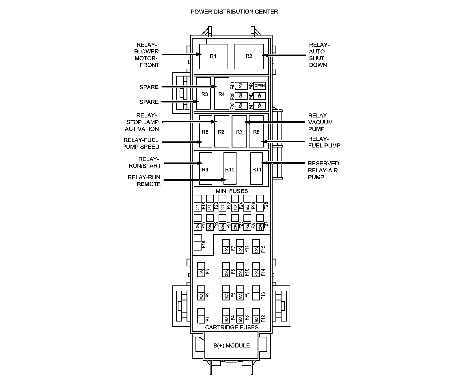 Auto Shut Down Relay is located in the Power Distribution Center (PDC).