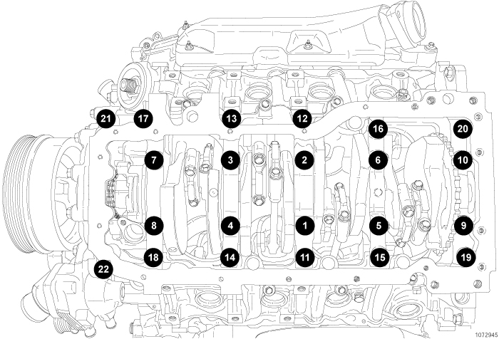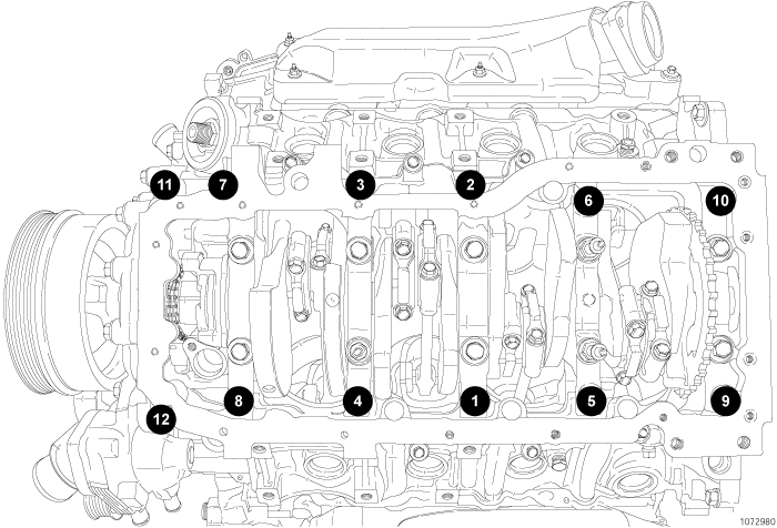 Tighten bolts to 54 Nm (40 ft. lbs.) in the sequence shown.