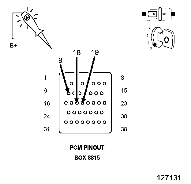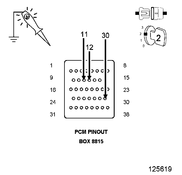 2. Using a 12 volt test light connected to ground, check the PCM Fused Ignition circuits.