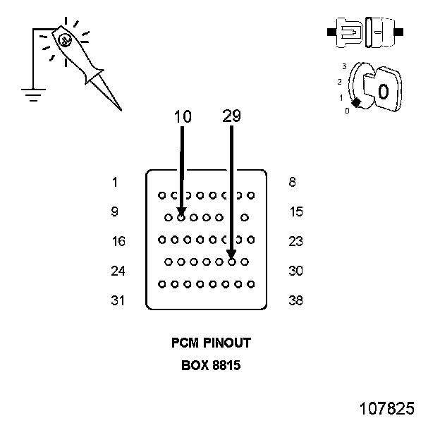 CAUTION: Do not probe the PCM harness connectors. Probing the PCM harness connectors will damage the PCM terminals resulting in poor terminal to pin connection. Install PCM Pinout Box 8815 to perform diagnosis.