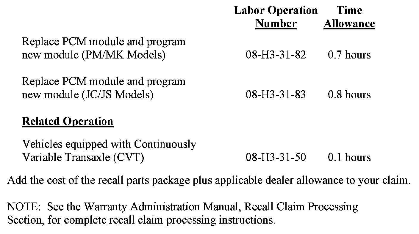 submitted will be used by Chrysler to record recall service completions and provide dealer payments.
