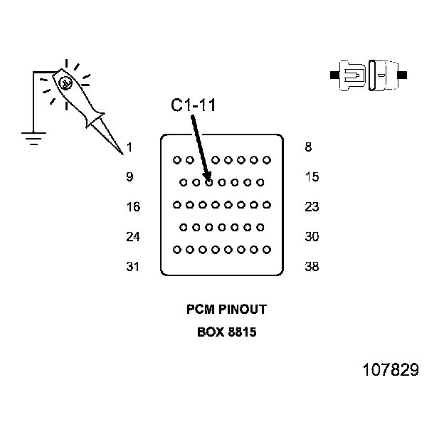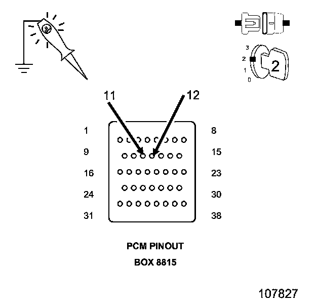 2. Using a 12 volt test light connected to 12 volts, check the PCM ground circuits.