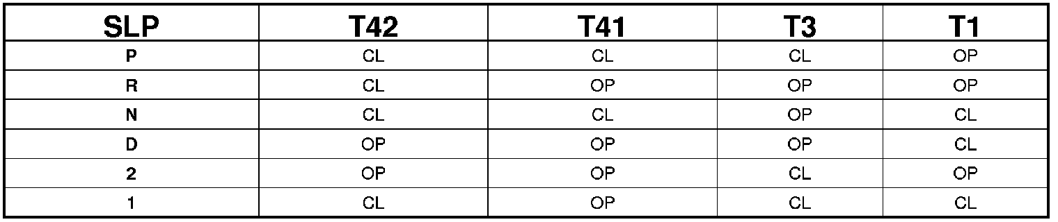 Since there are four switches, there are 16 possible combinations of open and closed switches (codes). Seven of these codes are related to gear position and three are recognized as "between gear" codes. This results in six codes which should never occur. These are called "invalid" codes. An invalid code will result in a DTC, and the TCM will then determine the shift lever position based on pressure switch data. This allows reasonably normal transmission operation with a TRS failure.
