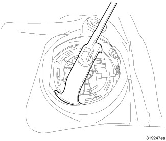7. Raise the fuel pump module out of the fuel tank using caution not spill fuel inside the vehicle.