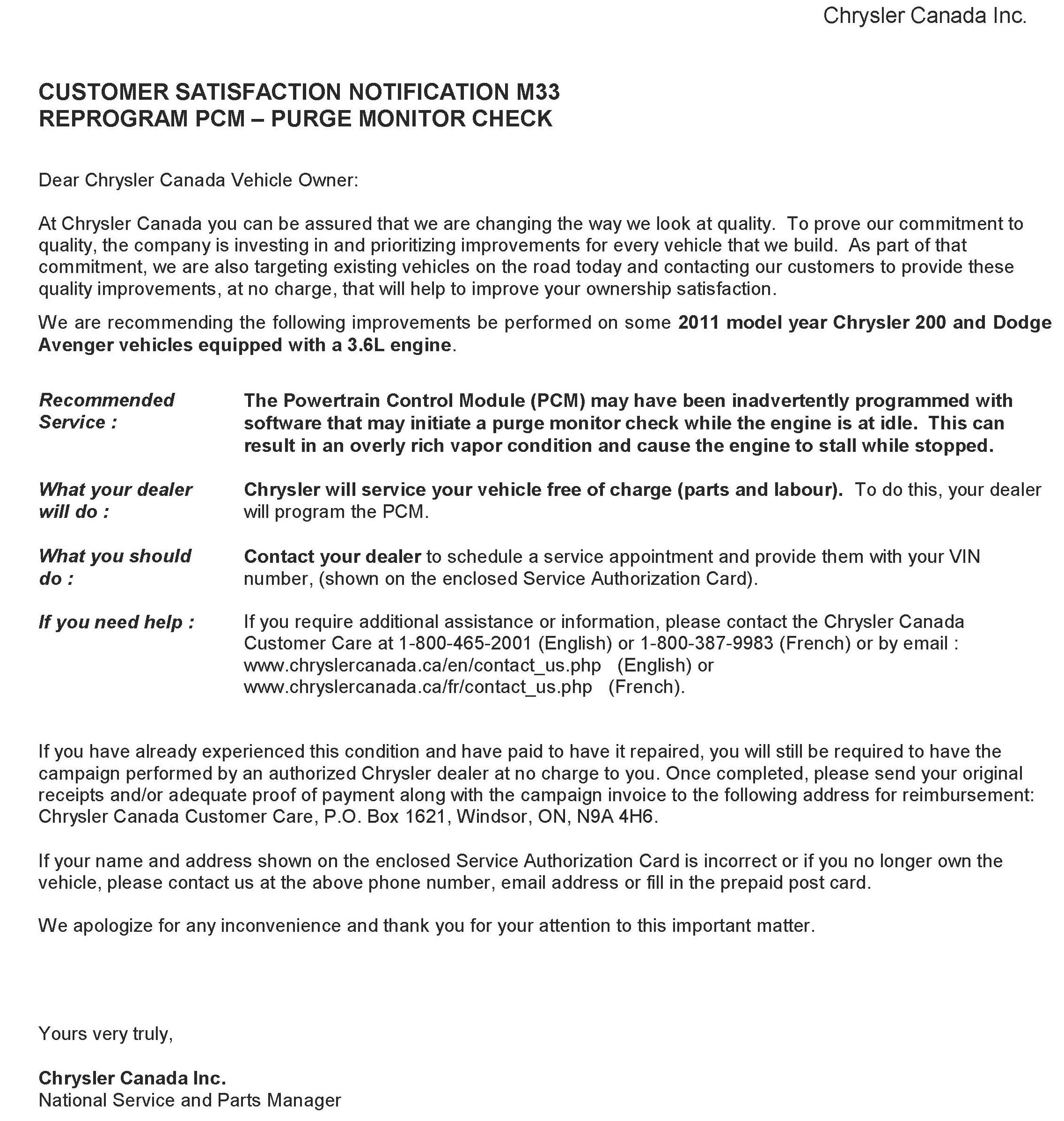 Canada - Campaign - ECM Update for EVAP Purge Monitor Check
