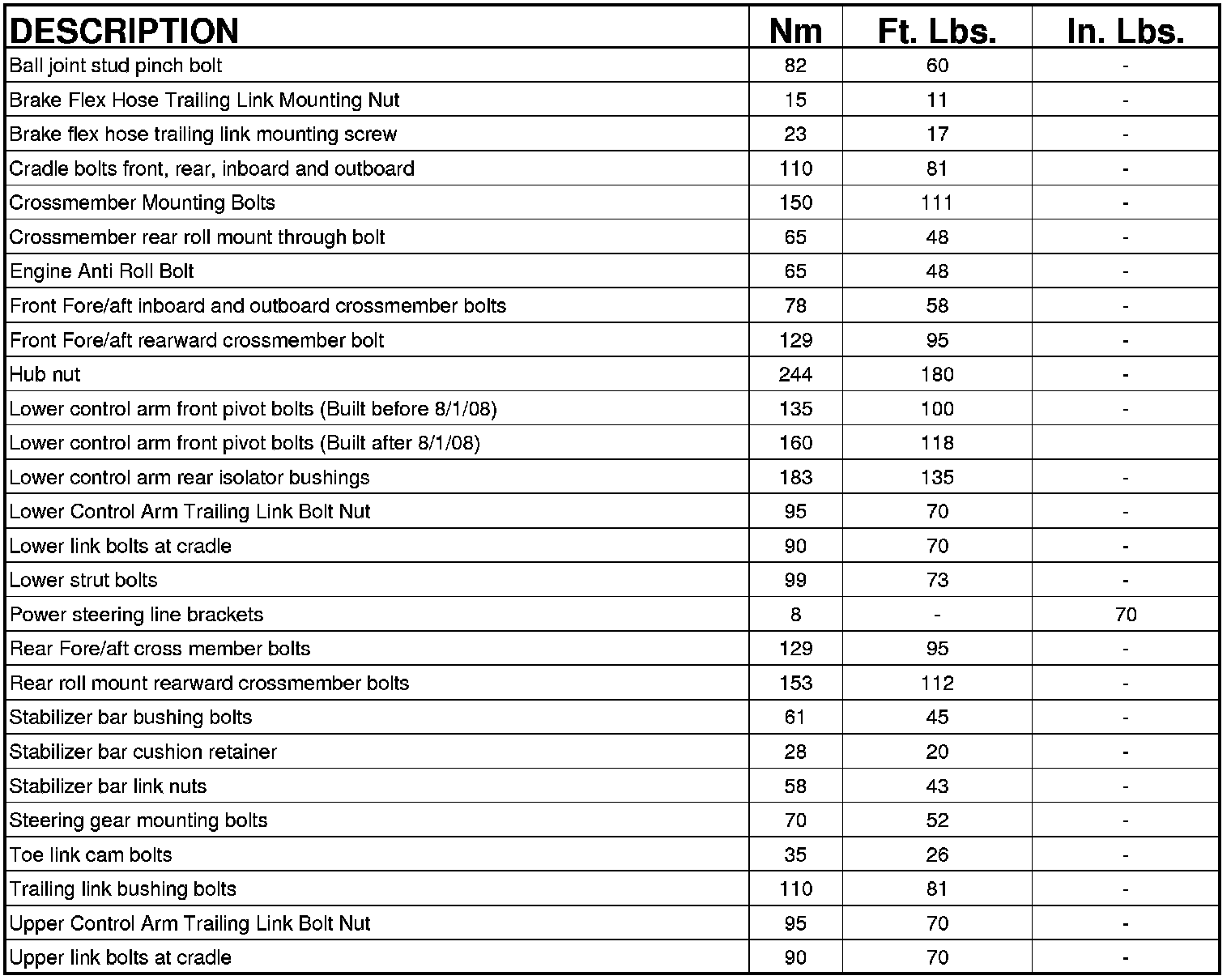 FASTENER TORQUE