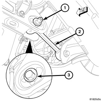 1. While holding the cam bolt head (3) stationary, loosen the toe link mounting cam bolt nut (1).